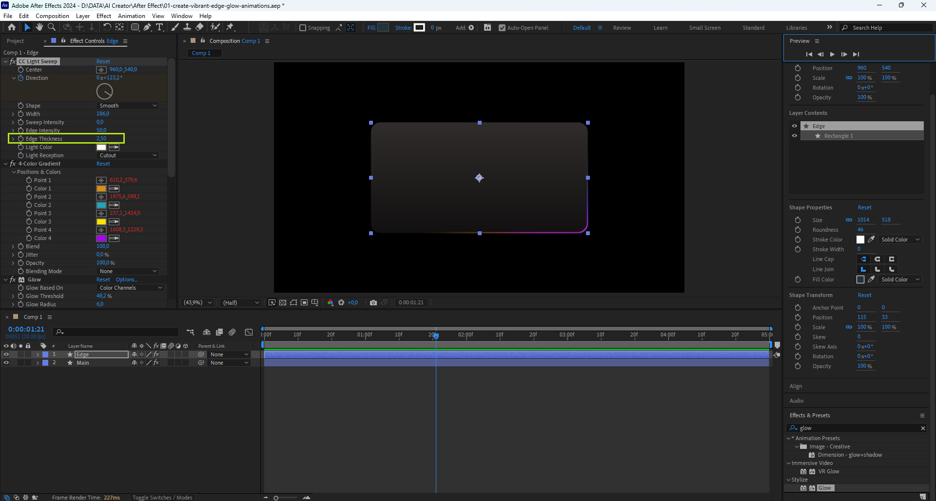 01 Create Vibrant Edge Glow Animations In After Effects